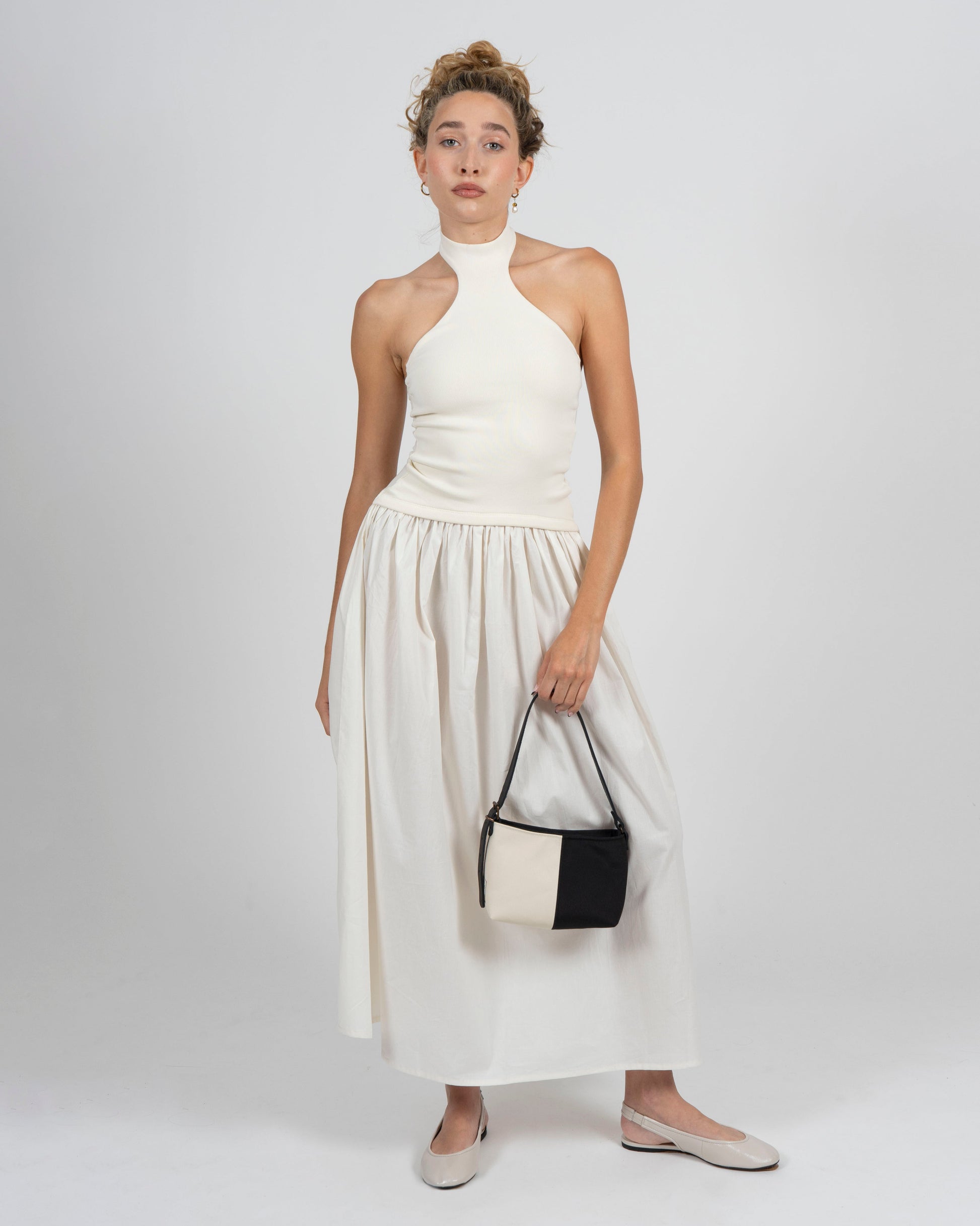 Bruna es un bolso baguette, con correa de piel regulable. Pensado para el día y la noche, combinable con todo.