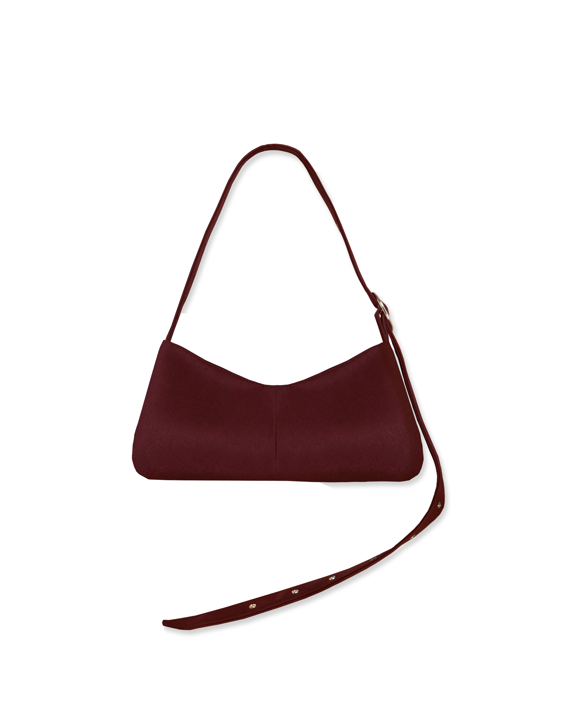 Gala, el bolso baguette con correa regulable y hebilla circular, ideal para usarlo al hombro o cruzado.