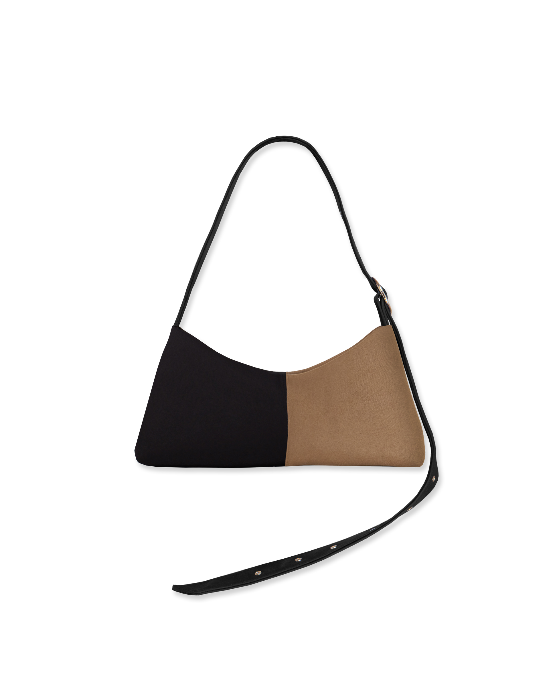 Gala, el bolso baguette con correa regulable y hebilla circular, ideal para usarlo al hombro o cruzado.
