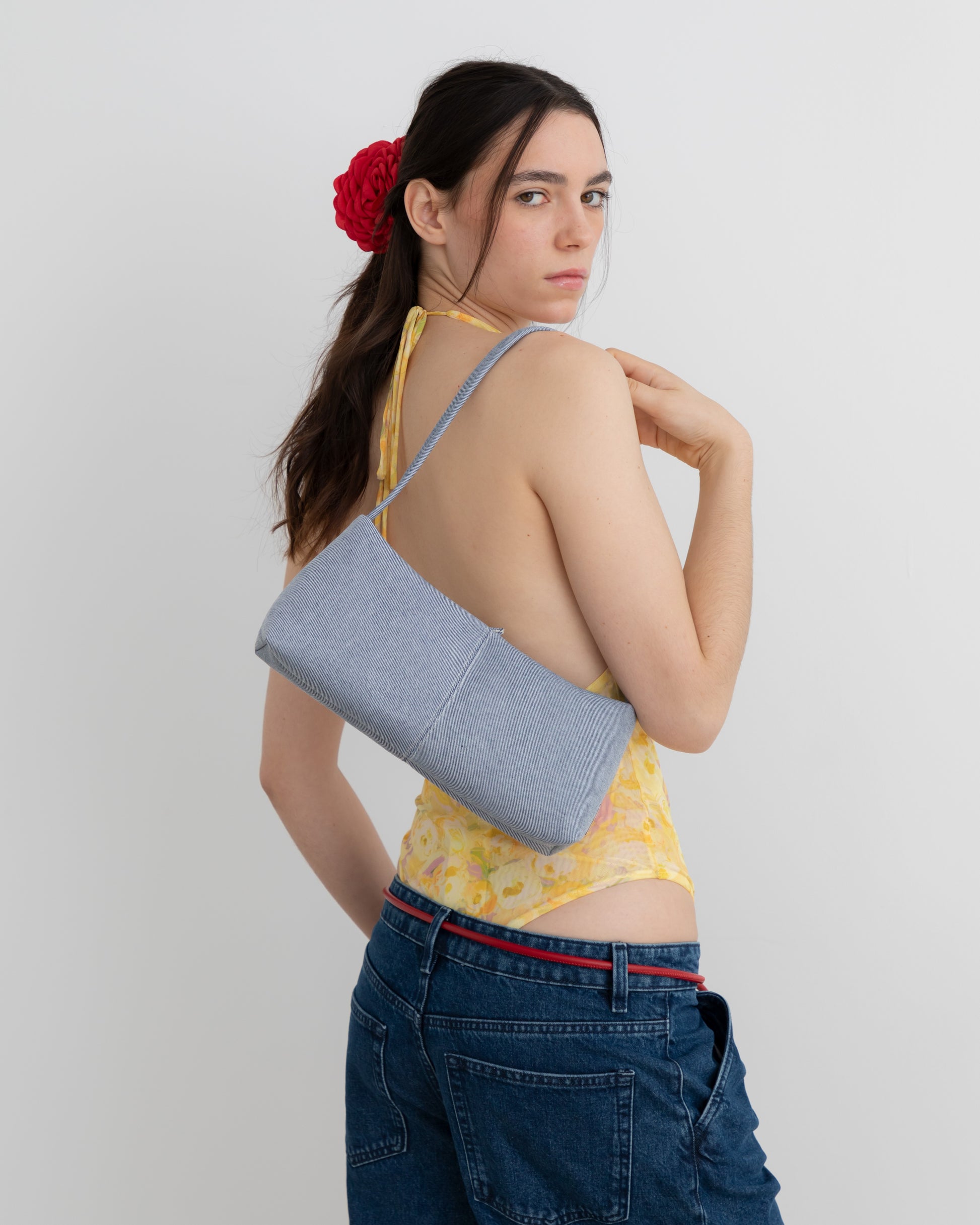 Gemma es un bolso baguette de gran capacidad, con correa fija de 60 cm ideal para llevarla al hombro. Pensada para el día y la noche, combinable con todo.