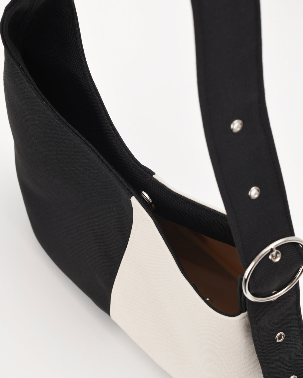 Simona es un bolso asimétrico de base ovalada, diseñado para cualquier ocasión, ya sea de día o de noche. Su forma es única, con una estética minimalista.