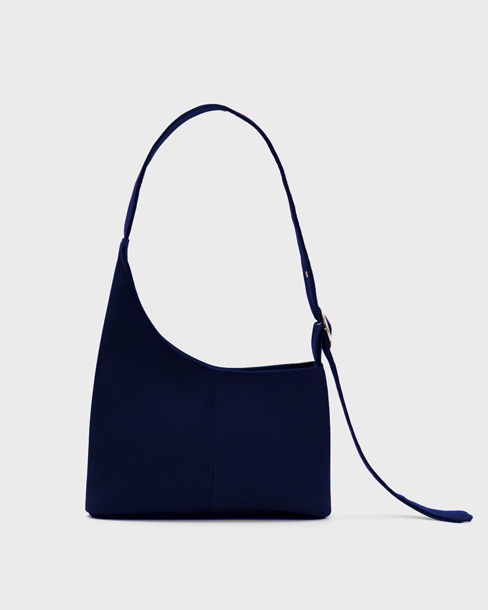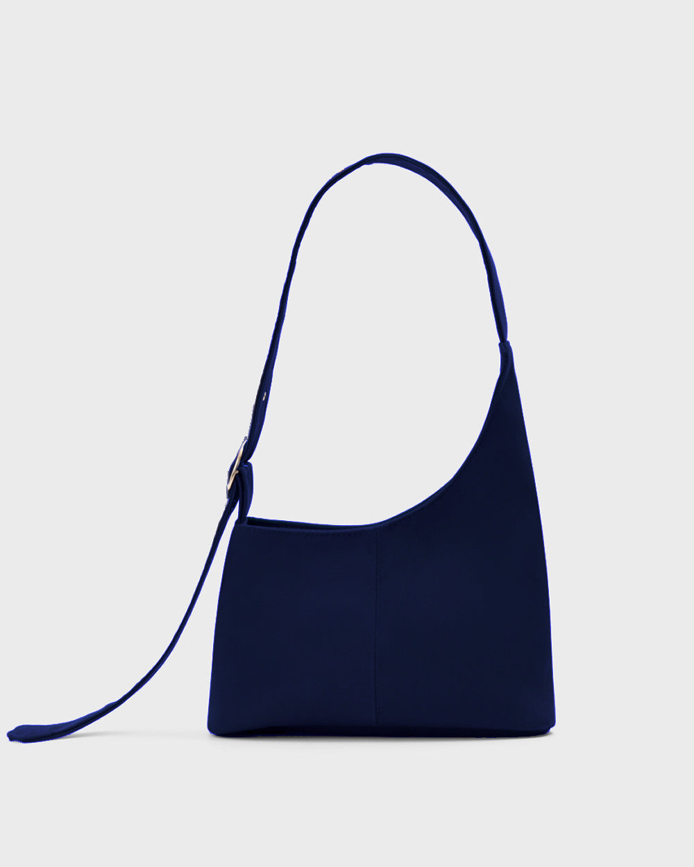 Simona es un bolso asimétrico de base ovalada, diseñado para cualquier ocasión, ya sea de día o de noche. Su forma es única, con una estética minimalista.