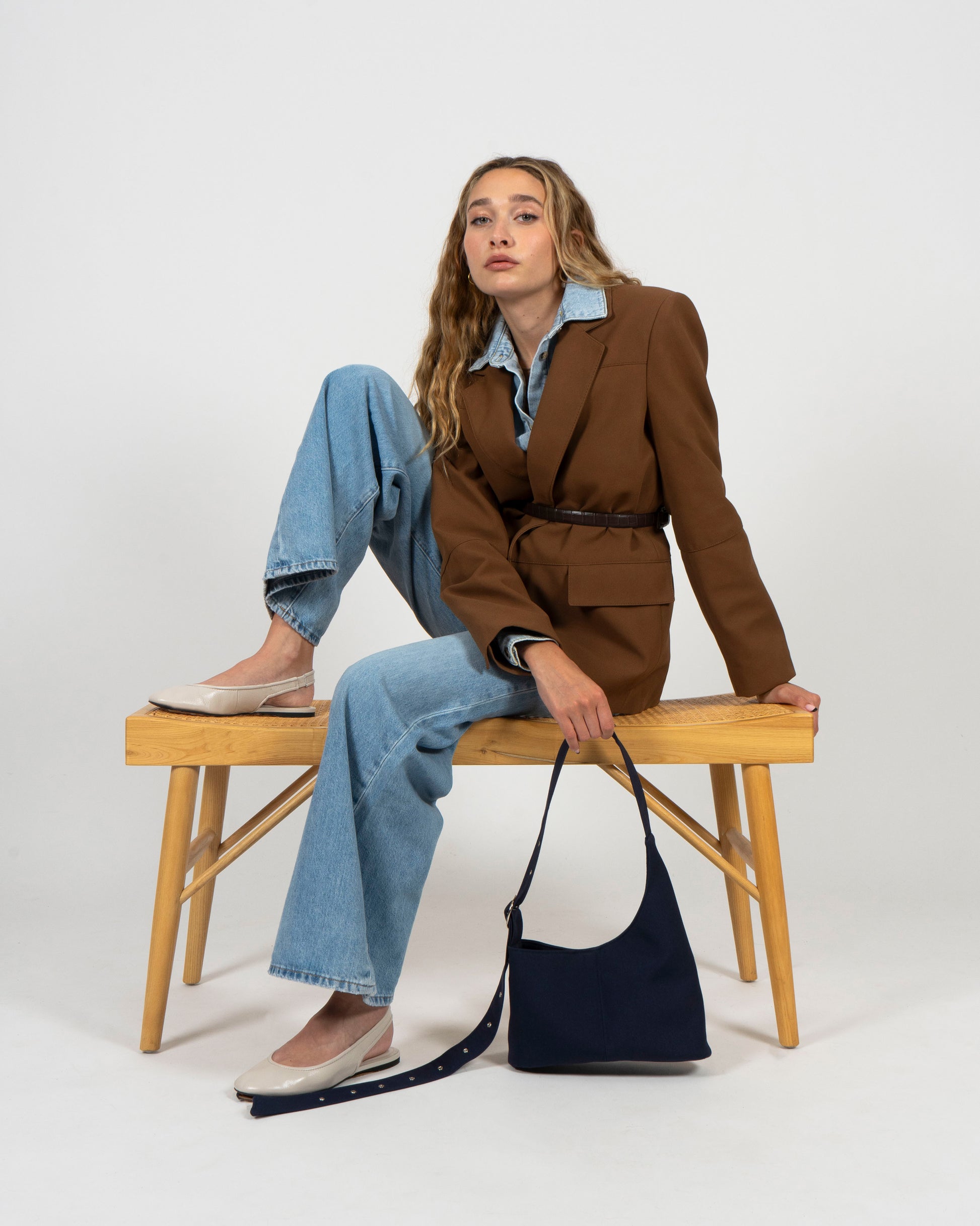 De tamaño medio, Simona ofrece espacio para llevar lo esencial, junto con un neceser pequeño o maquillaje.
